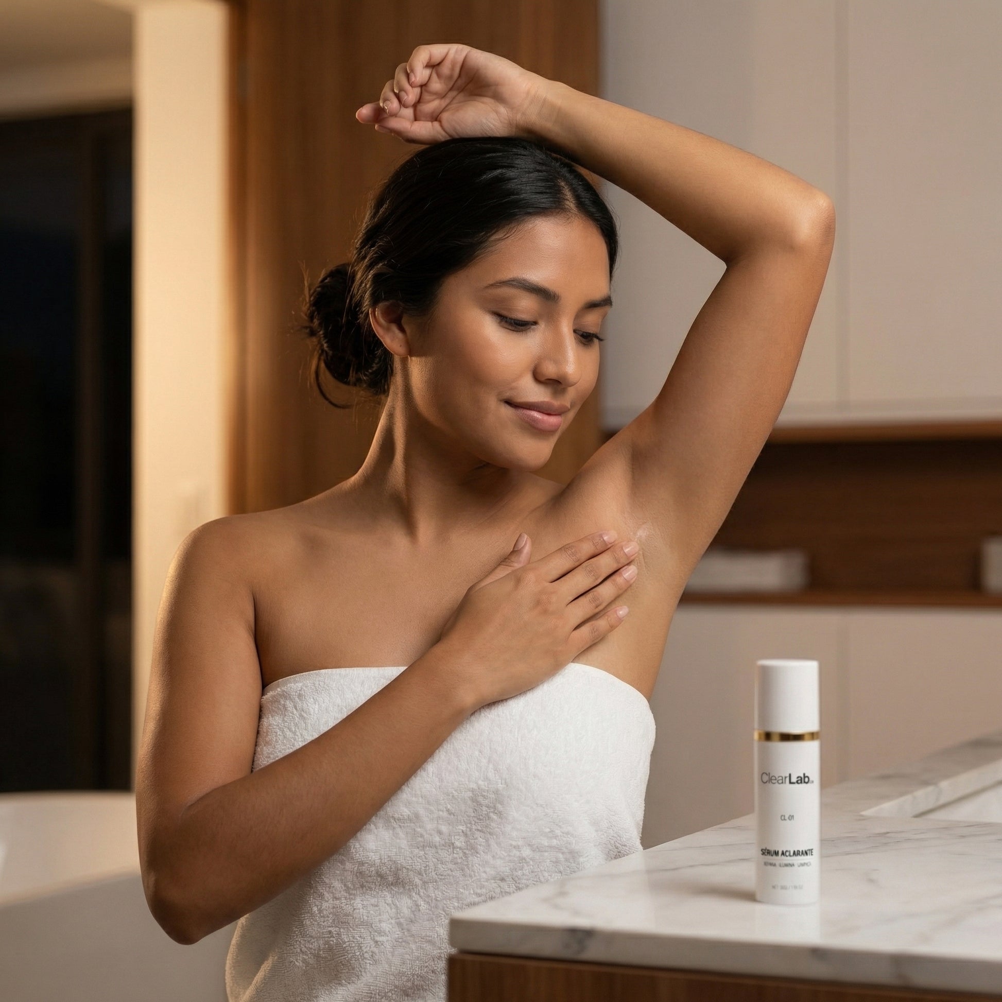Está formulado específicamente para pieles tipo III-V, que son las más propensas a hiperpigmentación post-inflamatoria. No aclara tu tono natural — corrige solo la zona dañada para que vuelva a su color base.